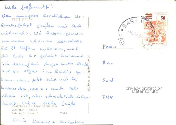 old postcard Sveti Stefan postalisch gelaufen Erhaltung siehe scans