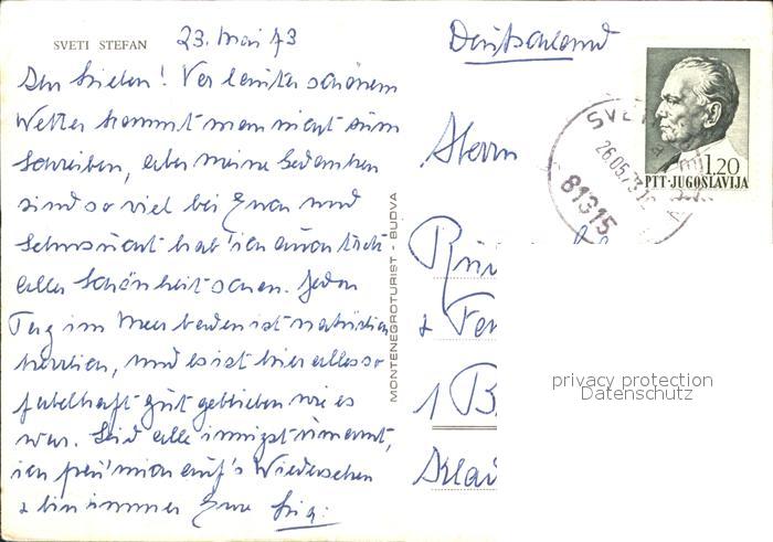 old postcard Sveti Stefan Strand postalisch gelaufen Erhaltung siehe scans