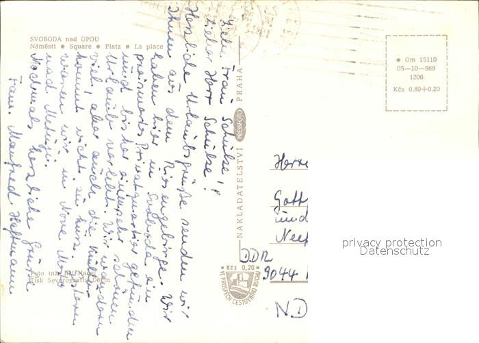 old postcard Svoboda nad Úpou Namesti postalisch gelaufen Erhaltung siehe scans