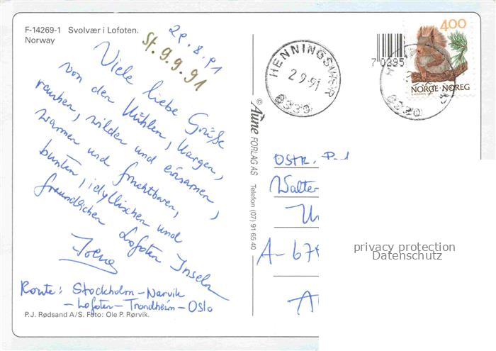 74096730 old postcard Svolvaer Norge Lofoten Luftbild postalisch gelaufen Erhaltung siehe scans [IrynaD87] KatCode: 11380