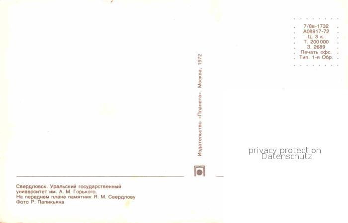 Swerdlowsk Jekaterinburg Universitaet Swerdlow Denkmal postalisch nicht gelaufen Erhaltung siehe scans [NatalD47]