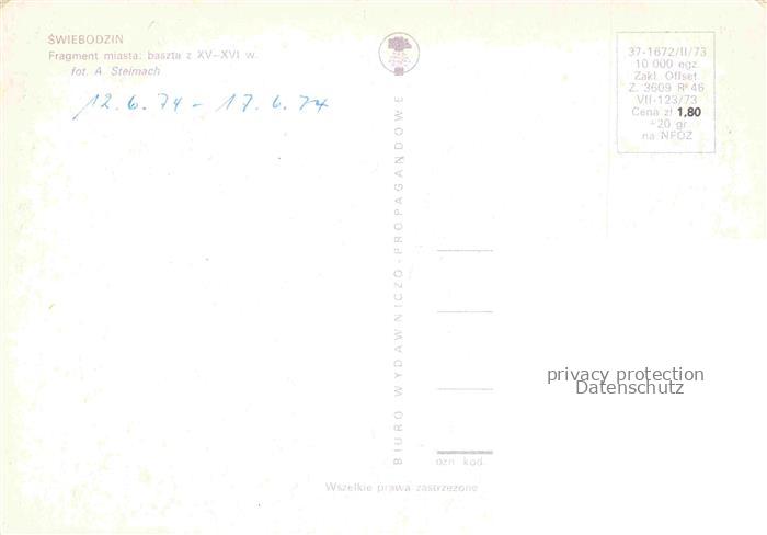 74086677 old postcard Swiebodzin Schwiebus Ostbrandenburg PL Fragment miasta baszta postalisch gelaufen Erhaltung siehe scans [WerneD78] KatCode: 11410