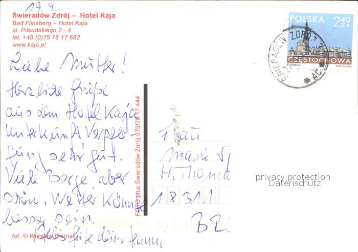 old postcard Swieradow Zdroj Bad Flinsberg Hotel Kaja postalisch gelaufen Erhaltung siehe scans
