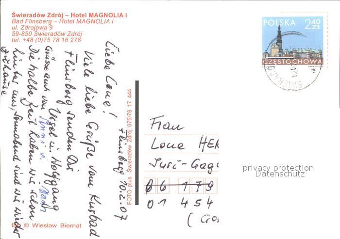 old postcard Swieradow Zdroj Bad Flinsberg Hotel Magnolia postalisch gelaufen Erhaltung siehe scans