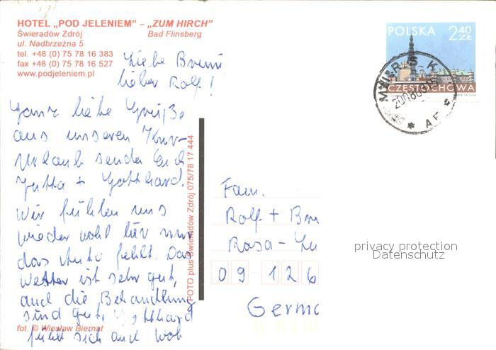 old postcard Swieradow Zdroj Bad Flinsberg Hotel Pod Jeleniem Grillplatz Gastraum Zimmer postalisch gelaufen Erhaltung siehe scans