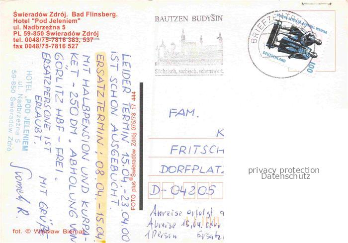 74132295 old postcard Swieradow Zdroj Bad Flinsberg PL Hotel Pod Jeleniem postalisch gelaufen Erhaltung siehe scans [FriedD77] KatCode: 11410