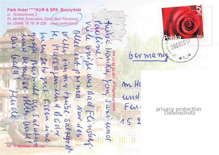 74043913 old postcard Swieradow Zdroj Bad Flinsberg PL Park Hotel Kur und Spa Buczynski Gymnastik Wandern Massage Musik postalisch gelaufen Erhaltung siehe scans [WerneD78] KatCode: 11410