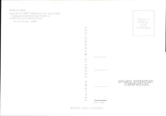 Swieta Lipka Kosciol arch. Jerzy Ertly Kirche 17. Jhdt. postalisch nicht gelaufen Erhaltung siehe scans
