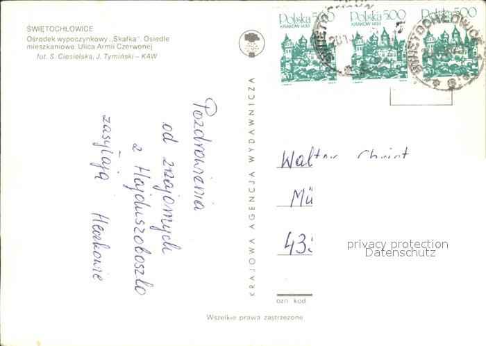 alte Postkarte Swietochlowice Schwientochlowitz Osrodek wypoczynkowy Skalka Osiedle mieszkaniowe Ulica Armii Czerwonej postalisch gelaufen Erhaltung siehe scans