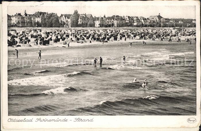 old postcard Swinemuende Ostseebad Westpommern Strand postalisch gelaufen Erhaltung siehe scans