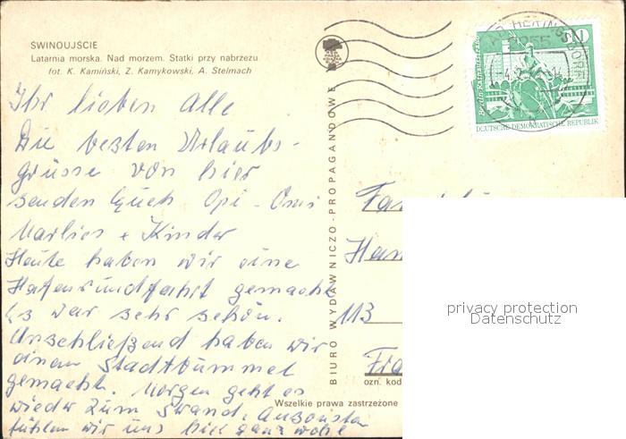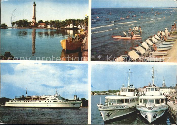 old postcard Swinoujscie Swinemuende Hafen Leuchtturm Tretboote postalisch gelaufen Erhaltung siehe scans