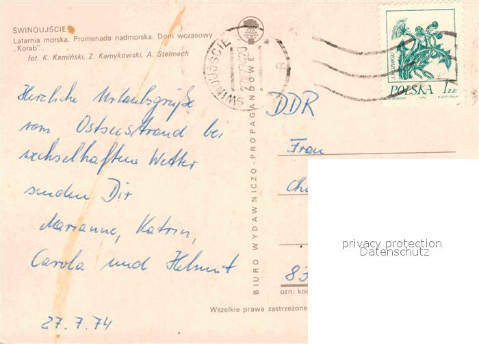 old postcard Swinoujscie Swinemuende Latarnia morska Promenade nadmorska Dom wczasowy Korab postalisch gelaufen Erhaltung siehe scans [FriedD77]