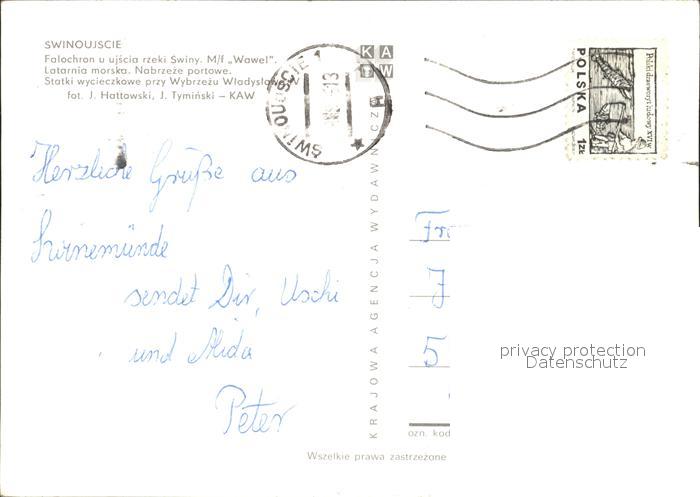 old postcard Swinoujscie Swinemuende M f Wawel Latarnia morska Nabrzeze portowe postalisch gelaufen Erhaltung siehe scans