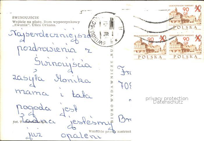 old postcard Swinoujscie Swinemuende Wejscie na plaze Dom wypoczynkowy Ewunia Ulica Orkana postalisch gelaufen Erhaltung siehe scans