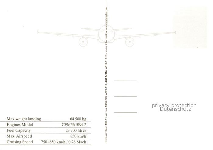 Swissair Airbus A320 postalisch nicht gelaufen Erhaltung siehe scans [FriedD77]