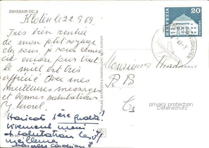 alte Postkarte Swissair DC-9 HB-IFA postalisch gelaufen Erhaltung siehe scans