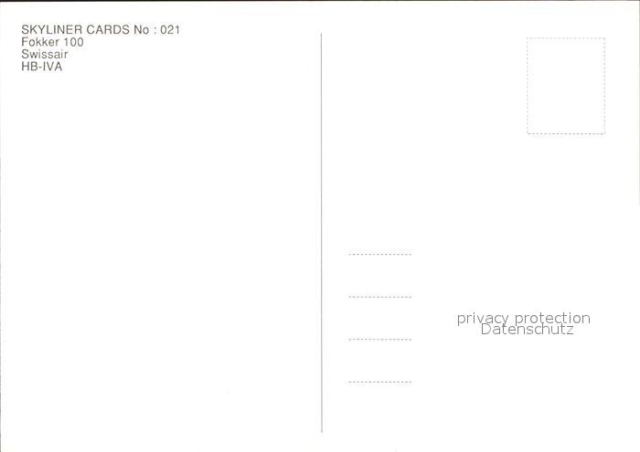 Swissair Fokker 100 HB-IVA postalisch nicht gelaufen Erhaltung siehe scans