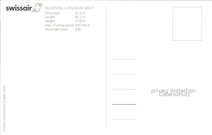 Swissair McDonnell Douglas MD-11 postalisch nicht gelaufen Erhaltung siehe scans