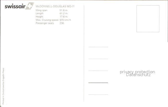 Swissair McDonnell-Douglas MD-11 postalisch nicht gelaufen Erhaltung siehe scans