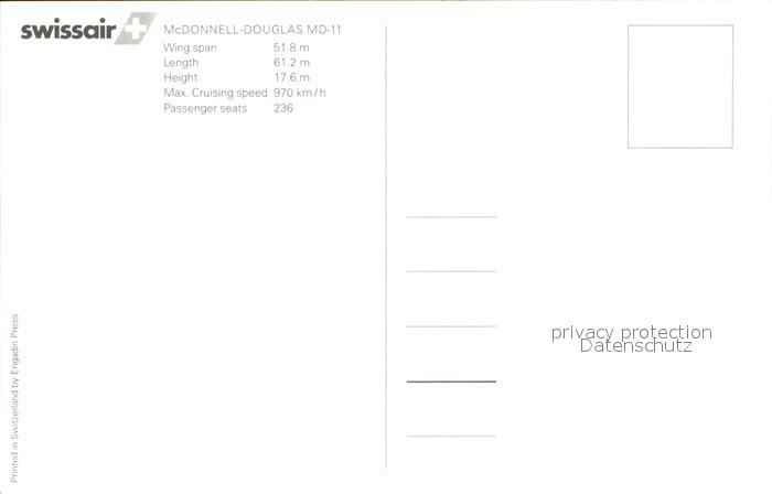 Swissair McDonnell-Douglas MD-11 postalisch nicht gelaufen Erhaltung siehe scans