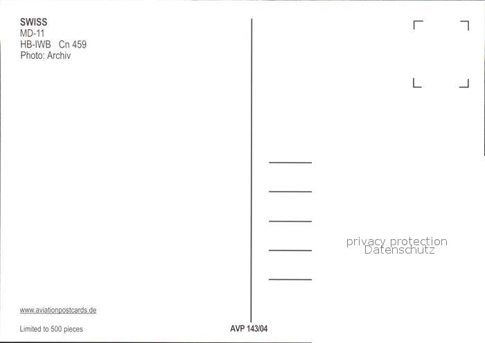Swissair MD-11 HB-IWB Cn 459 postalisch nicht gelaufen Erhaltung siehe scans