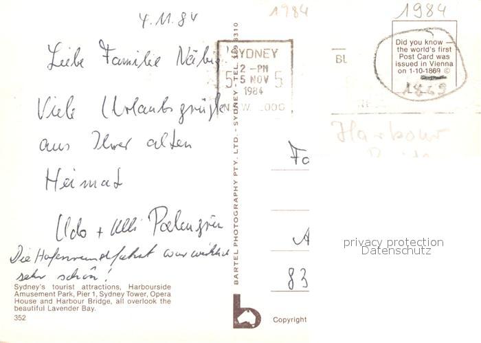 72929603 old postcard Sydney Florida Brueckenpartie mit Segelbooten postalisch gelaufen Erhaltung siehe scans [LiesaD40] KatCode: 14140110000000