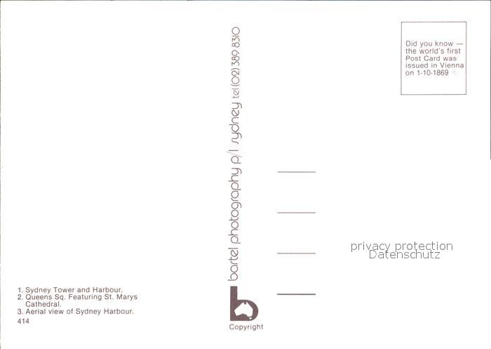 Sydney New South Wales Tower and Harbour Queens Square St Marys Cathedral Aerial view postalisch nicht gelaufen Erhaltung siehe scans [WerneD78 kt116box]