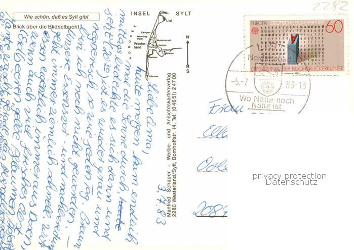 72909435 alte Postkarte Sylt Blidselburcht postalisch gelaufen Erhaltung siehe scans [LiesaD40] KatCode: 11110001054133