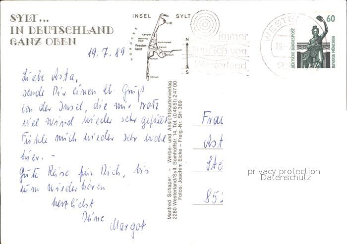 alte Postkarte Sylt Fliegeraufnahme 1969 und 1989 postalisch gelaufen Erhaltung siehe scans