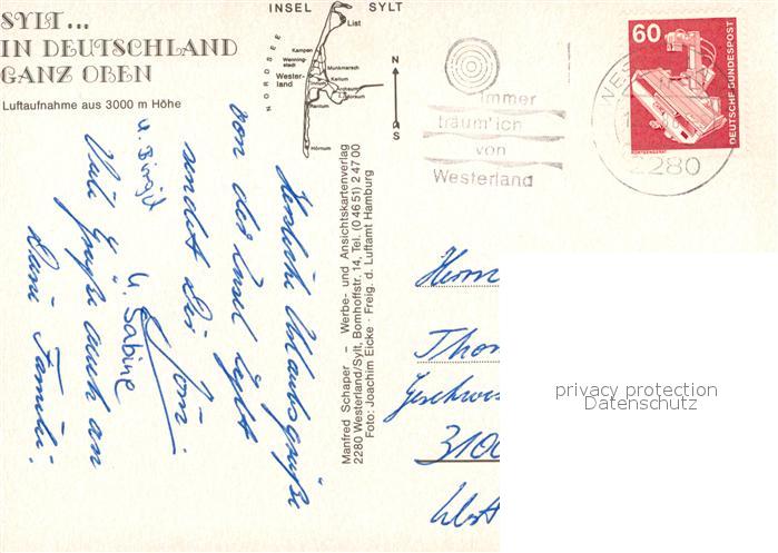 73204175 alte Postkarte Sylt Fliegeraufnahme postalisch gelaufen Erhaltung siehe scans [NatalD47] KatCode: 11110001054133