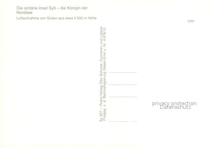 73161798 Sylt Fliegeraufnahme postalisch nicht gelaufen Erhaltung siehe scans [LiesaD40] KatCode: 11110001054133