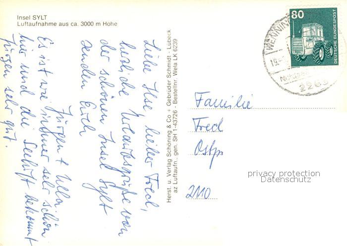 73119724 alte Postkarte Sylt Fliegeraufnahme postalisch gelaufen Erhaltung siehe scans [LiesaD40] KatCode: 11110001054133
