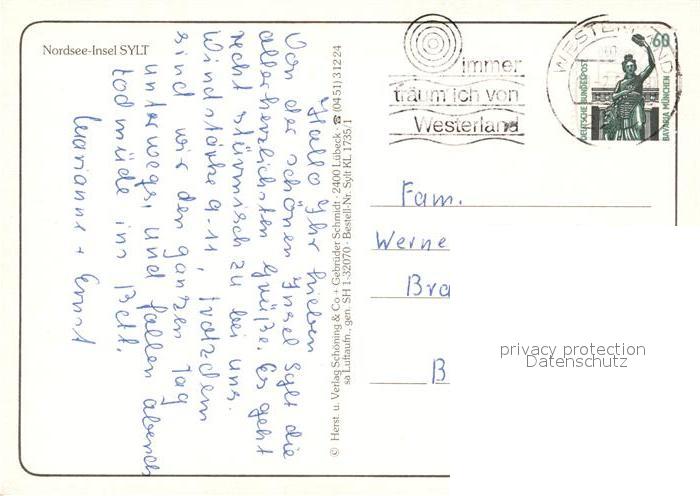 73110301 alte Postkarte Sylt Fliegeraufnahme postalisch gelaufen Erhaltung siehe scans [NatalD47] KatCode: 11110001054133