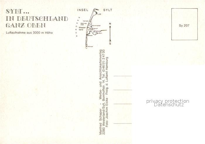 73015161 Sylt Fliegeraufnahme postalisch nicht gelaufen Erhaltung siehe scans [NatalD47] KatCode: 11110001054133