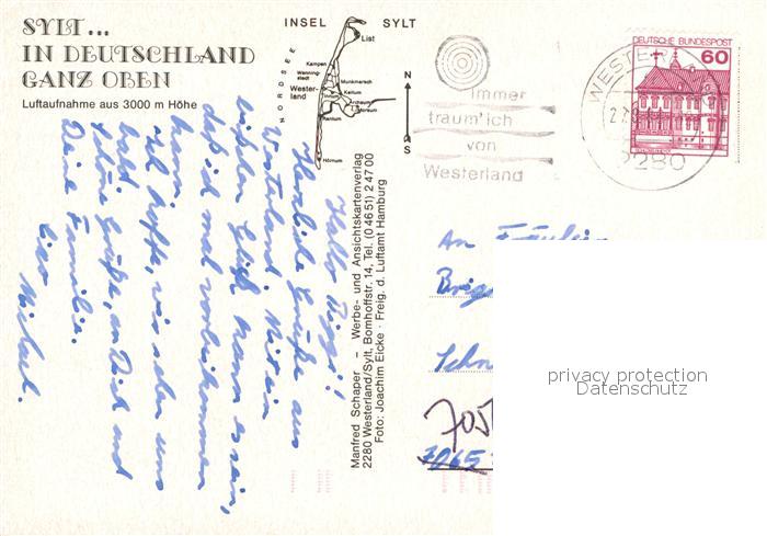 73011077 alte Postkarte Sylt Fliegeraufnahme postalisch gelaufen Erhaltung siehe scans [WerneD78] KatCode: 11110001054133