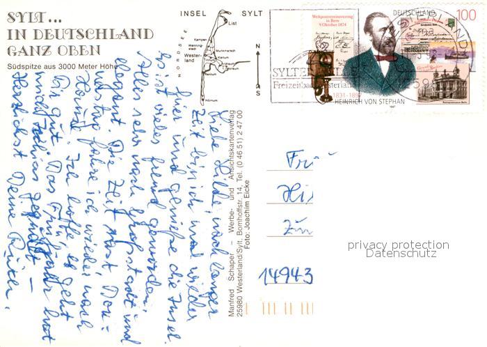 73005211 alte Postkarte Sylt Fliegeraufnahme postalisch gelaufen Erhaltung siehe scans [WerneD78] KatCode: 11110001054133