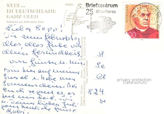 72989653 alte Postkarte Sylt Fliegeraufnahme postalisch gelaufen Erhaltung siehe scans [WerneD78] KatCode: 11110001054133