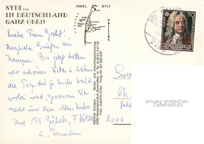 72961277 alte Postkarte Sylt Fliegeraufnahme postalisch gelaufen Erhaltung siehe scans [WerneD78] KatCode: 11110001054133