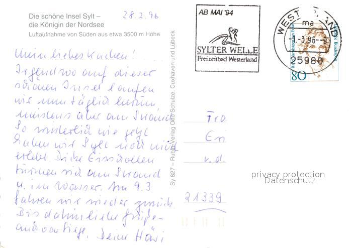 72961171 alte Postkarte Sylt Fliegeraufnahme postalisch gelaufen Erhaltung siehe scans [NatalD47] KatCode: 11110001054133