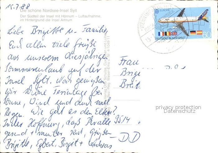 alte Postkarte Sylt Fliegeraufnahme mit Hoernum und Insel Amrum postalisch gelaufen Erhaltung siehe scans