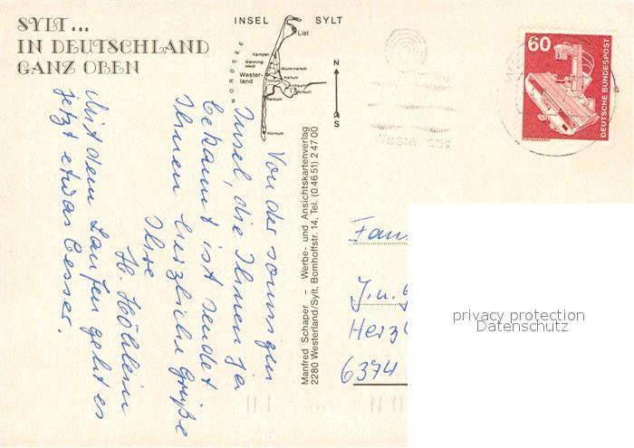 73066693 alte Postkarte Sylt Fliegeraufnahme Strand Duenen Friesenhaus Brandung postalisch gelaufen Erhaltung siehe scans [WerneD78] KatCode: 11110001054133