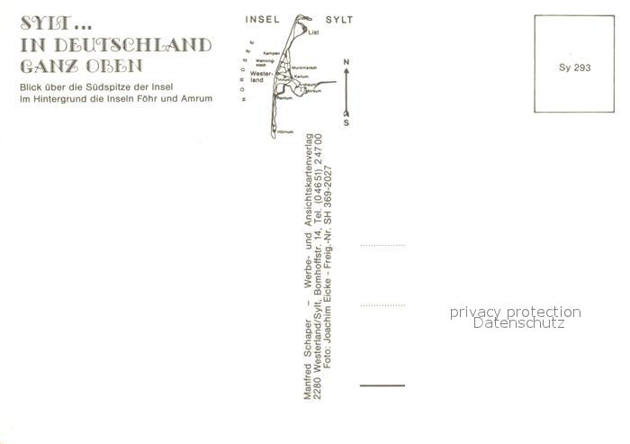 73161799 Sylt Fliegeraufnahme Suedspitze mit Foehr und Amrum postalisch nicht gelaufen Erhaltung siehe scans [LiesaD40] KatCode: 11110001054133