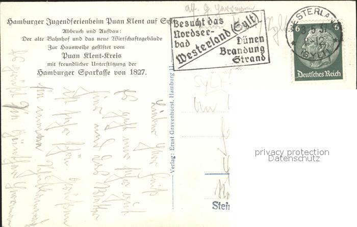 32185933 alte Postkarte Sylt Hamburger Jugendferienheim postalisch gelaufen Erhaltung siehe scans KatCode: 11110001054133