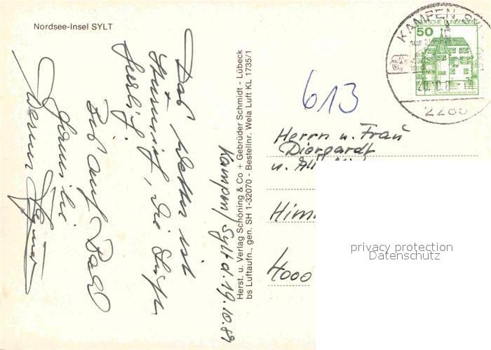 72856976 alte Postkarte SYLT Insel Schleswig-Holstein Fliegeraufnahme postalisch gelaufen Erhaltung siehe scans [AndreD76] KatCode: 11110001054133