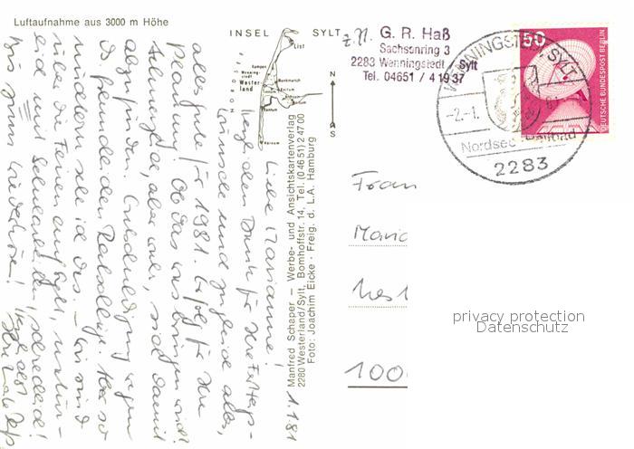 72664560 alte Postkarte SYLT Insel Schleswig-Holstein Fliegeraufnahme postalisch gelaufen Erhaltung siehe scans [AndreD76] KatCode: 11110001054133