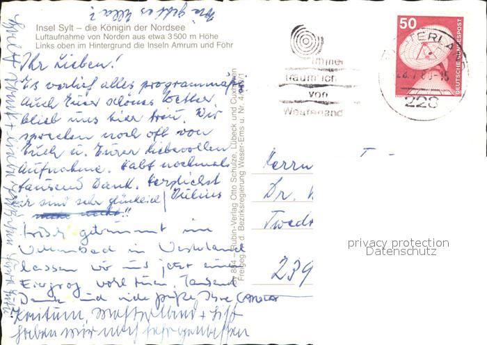 72543761 alte Postkarte SYLT Insel Schleswig-Holstein Fliegeraufnahme postalisch gelaufen Erhaltung siehe scans [LiesaD40 kv019box] KatCode: 11110001054133