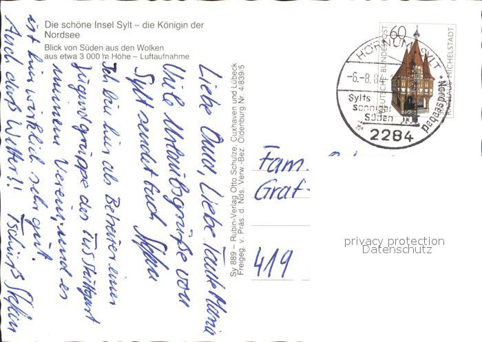 72303151 alte Postkarte SYLT Insel Schleswig-Holstein Fliegeraufnahme postalisch gelaufen Erhaltung siehe scans KatCode: 11110001054133