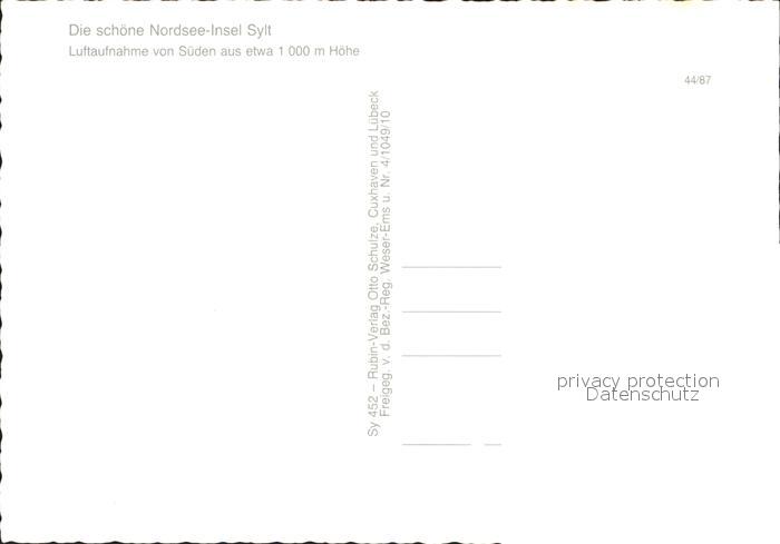 72170522 SYLT Insel Schleswig-Holstein Fliegeraufnahme postalisch nicht gelaufen Erhaltung siehe scans KatCode: 11110001054133
