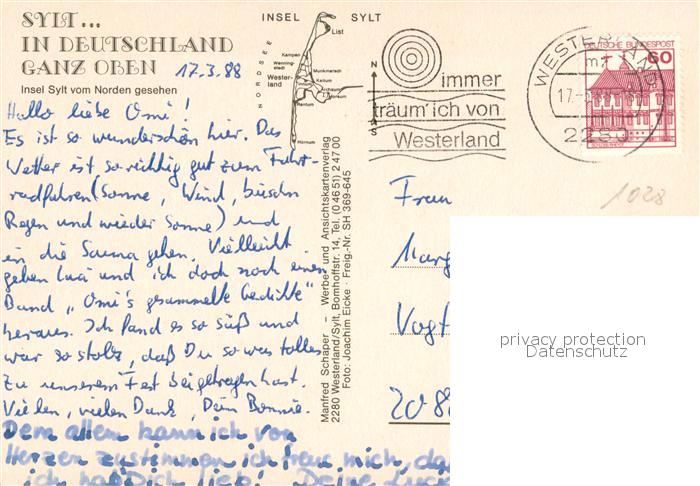 73739614 SYLT Insel Schleswig-Holstein Fliegeraufnahme postalisch gelaufen Erhaltung siehe scans [WerneD78] alte Postkarte Wern Katcode 11110001054133