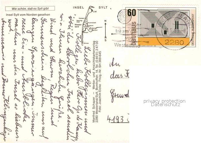 72786428 alte Postkarte SYLT Insel Schleswig-Holstein Fliegeraufnahme postalisch gelaufen Erhaltung siehe scans [AndreD76] KatCode: 11110001054133